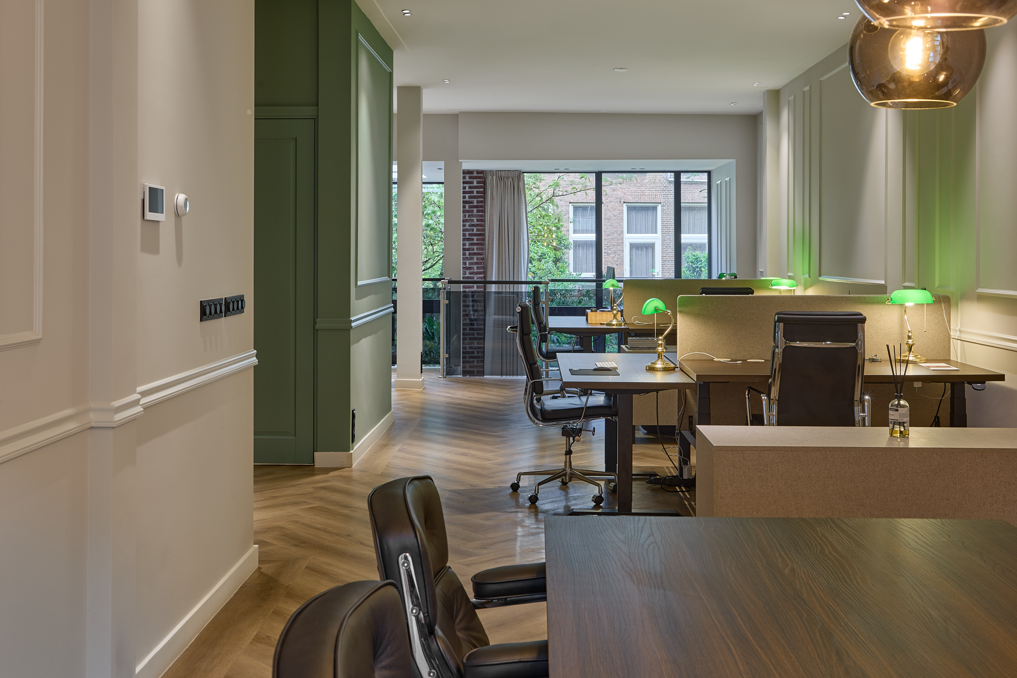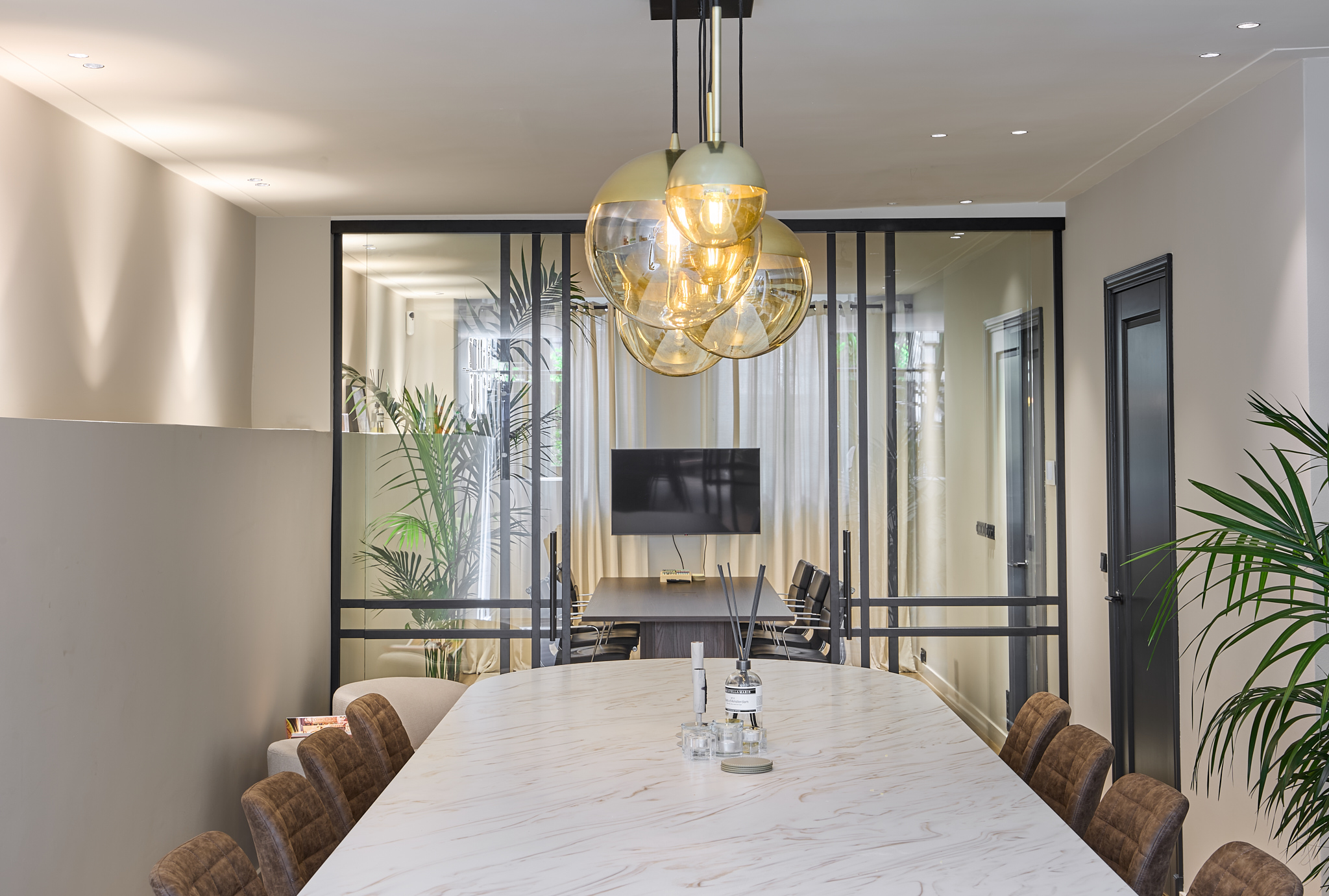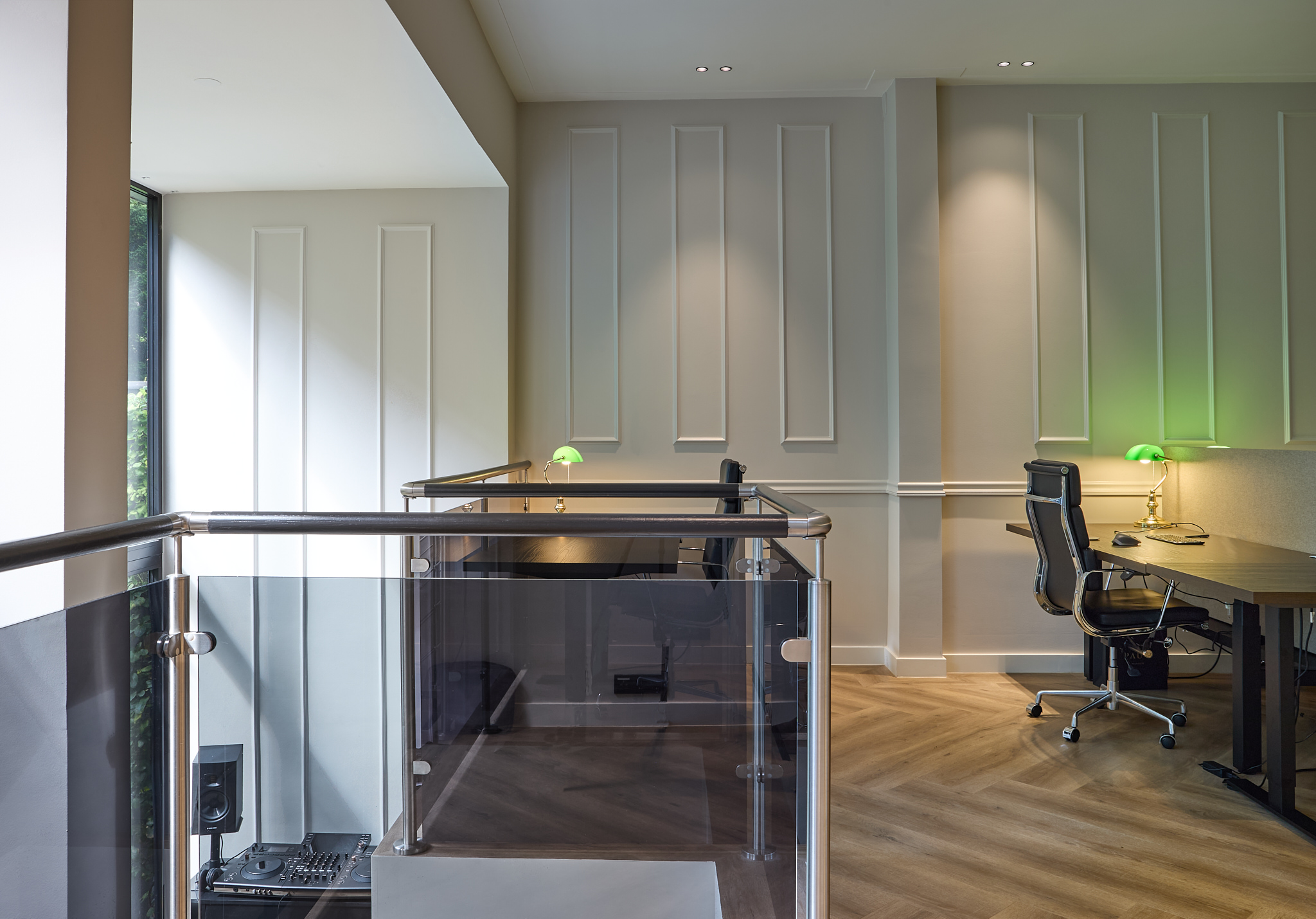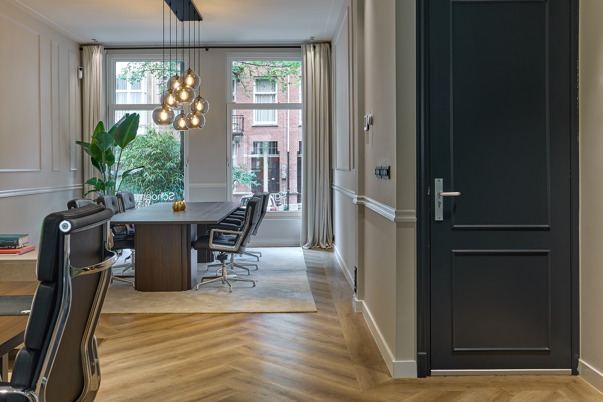The office was developed in close collaboration with interior designer Orlando Tjin Asjoe. Together we designed a layout that prioritises the end-user. This creates a pleasant separation between the ground-floor workspaces and the meeting rooms in the basement, ensuring a quiet atmosphere upstairs while guests are welcomed downstairs.