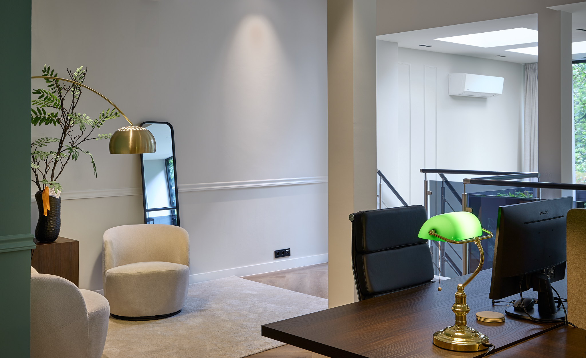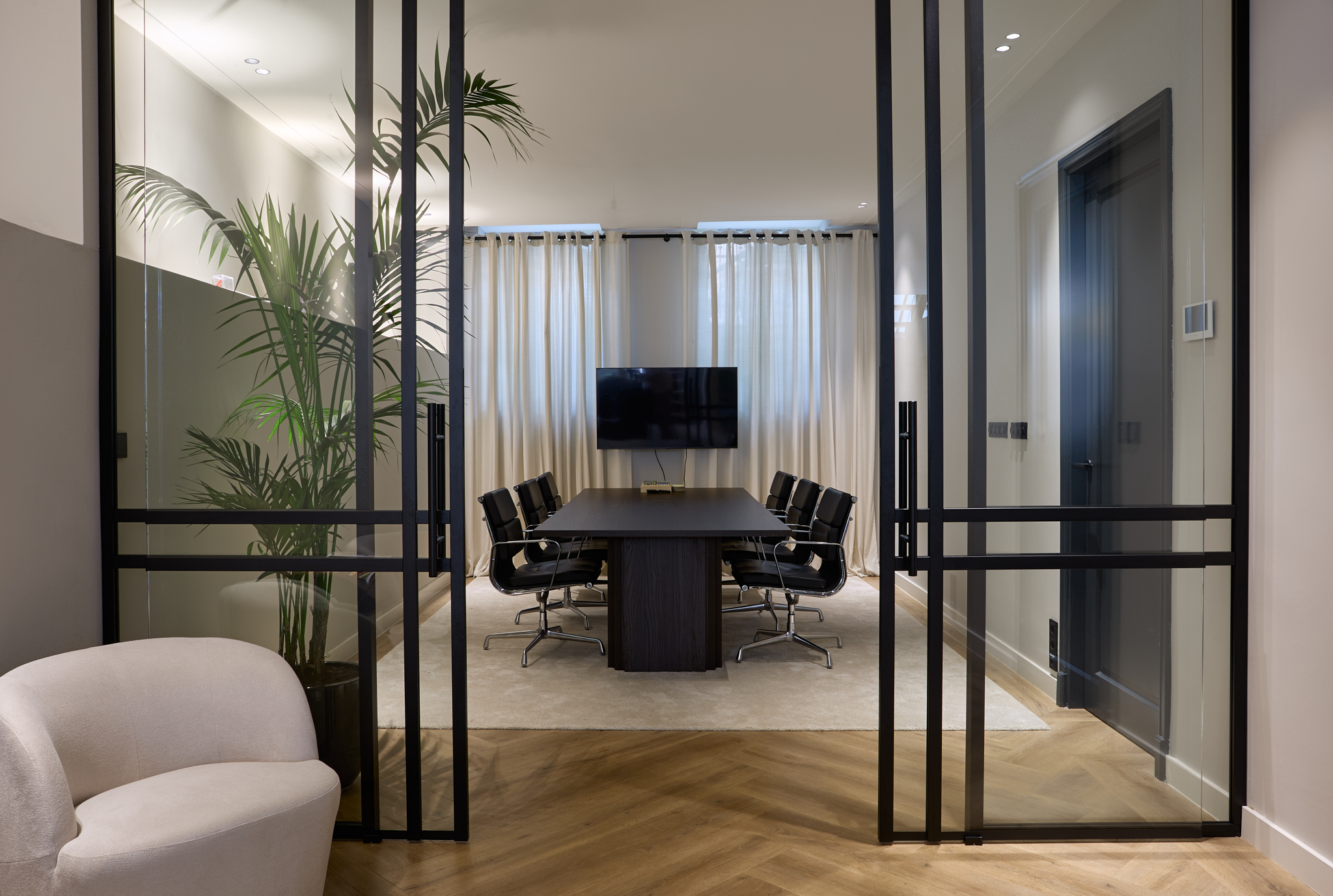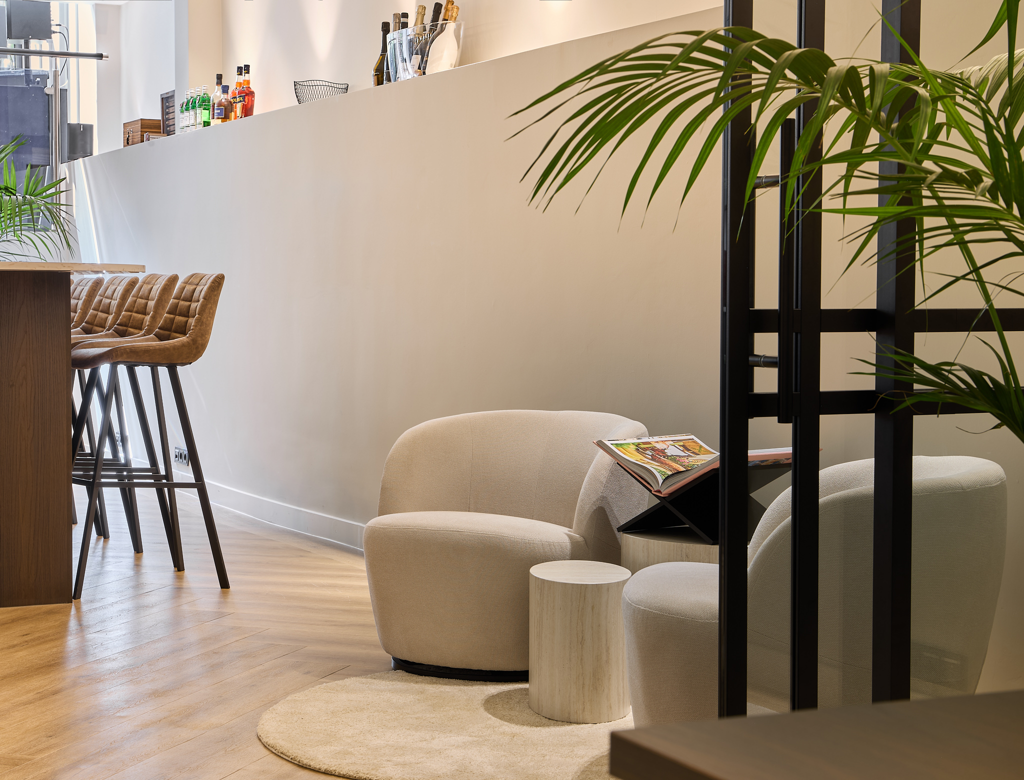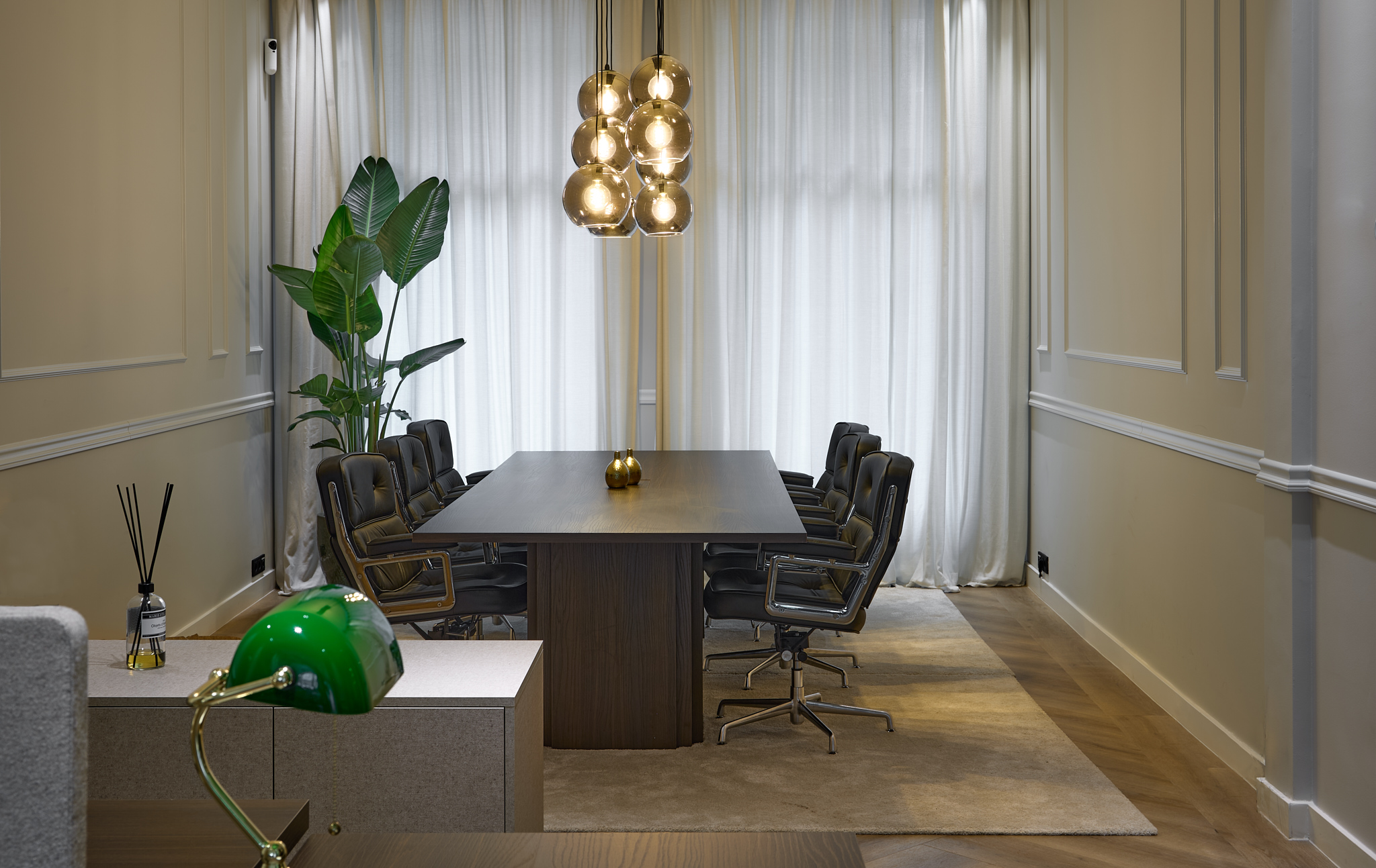 The office was developed in close collaboration with interior designer Orlando Tjin Asjoe. Together we designed a layout that prioritises the end-user. This creates a pleasant separation between the ground-floor workspaces and the meeting rooms in the basement, ensuring a quiet atmosphere upstairs while guests are welcomed downstairs.